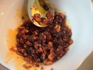 5.めん棒で4の生地を長方形に伸ばして、食べるラー油、レンコン、プロセスチーズをまんべんなく散りばめます(写真左下)。